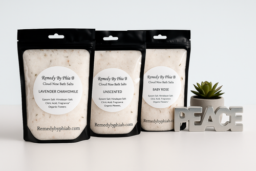 Our hand-poured bath salts are crafted in small batches with love in Charlotte, North Carolina, using only the good stuff — Epsom salt, Himalayan pink salt, and clean, all-natural ingredients. Each blend is designed to detox, soothe sore muscles, and bring your body back into balance while softening your skin and calming your spirit.